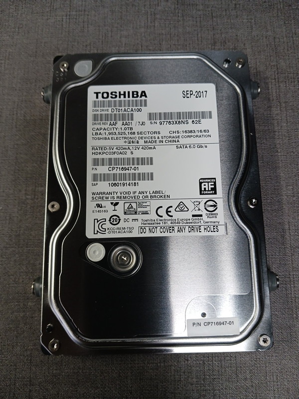 - ストレージ:HDD 1TB(TOSHIBA製・2017年9月製造)